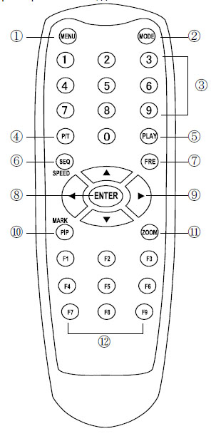 [3]: Кнопка режима квадратора. Нажимайте кнопку режима квадратора для просмотра записи в режиме одновременного отображения 4-х каналов.