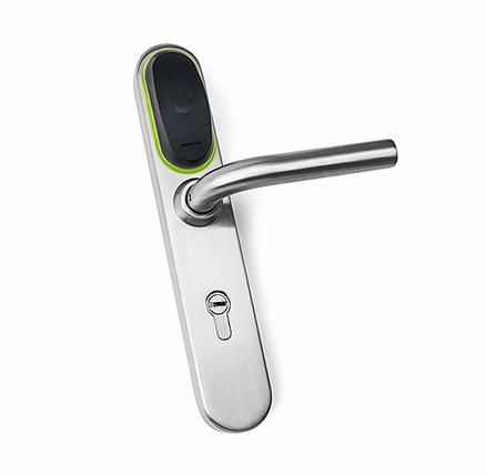 Cетевой электромеханический замок Eurolock EHT net, dd =0, 72, 85, 92. Eurolock EHT net – это бесконтактный считыватель и контроллер с питанием от 3х батареек 1,5V размера ААА, срок службы батареи более 50 000 циклов (max. 4 года). Eurolock достаточно установить на обычный механический замок (стандарта DIN), чтобы доступ в ваши двери стал электронным. Для открывания двери снаружи необходимо поднести карту, а изнутри достаточно только нажать ручку. Для монтажа, достаточно демонтировать старые дверные ручки и на их место установить Eurolock EHT net, сделав всего два отверстия в дверном полотне. Уникальность Eurolock EHT net в возможности оборудовать практически любую существующую дверь, потратив на монтаж и подключение всего 10 минут. Система позволяет пользователям и администраторам создавать и ?¯бновлять гибкую систему контроля доступа в помещение в составе сети RS-485 или WiFi * опционально с использованием специализированного ПО, так и автономно без участия компьютера. *Режим ОФИС - замок могут открыть только карты занесенный в базу контроллера замка. Функции: свободный проход, блокировка, принудительное состояние, «не беспокоить». При использовании специализированного ПО, карты доступа так же будут подчиняться ограничениям по времени и дням недели. *Режим ОТЕЛЬ - учитывает все особенности в безопасности и жизнедеятельности отелей/гостиниц//общежитий/студенческих кампусов и т.п. Позволяет создавать «гостевые карты», «карты персонала» и «карты специального назначения», с определенными правами доступа и защитой от копирования или утери карты.
