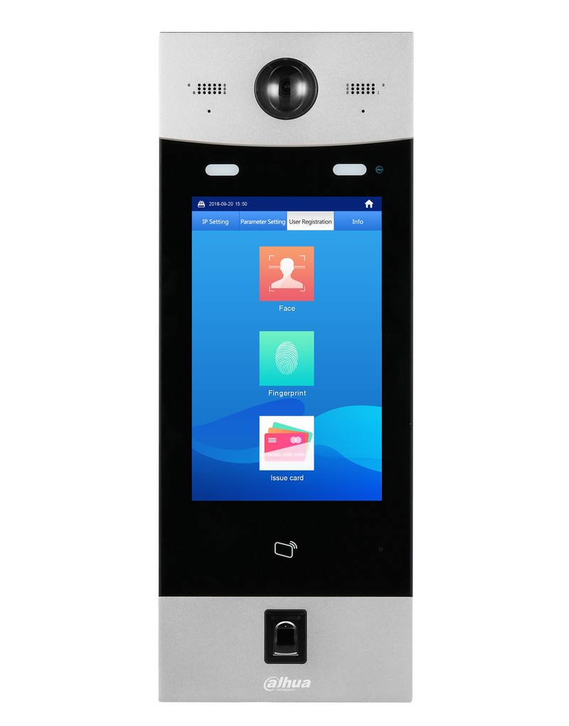 Многоабонентская вызывная IP панель с распознованием лиц; 10 IPS дюйм. дисплей; 2 Мп CMOS, Угол обзора 82°, Материал: Алюминий& Закаленное стекло; WEB интерфейс; LAN; Подсветка в ночное время, включение при приближении; распознавании лиц(10000), отпечатки пальцев(3000); Врезной монтаж; Sip протокол; Питание DC 12V; IP54, IK08, Габаритные размеры: 475 мм ×174 мм ×58 мм; Рабочая температура: -20°C~+60°C