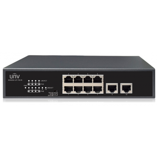 Сетевой 10-ти портовый PoE коммутатор Uniview с расстоянием передачи данных и питания до 250 метров в режиме EXTEND.