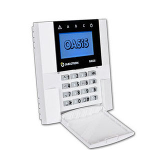 Jablotron JA-81F-RGB - проводная LCD клавиатура для управления и программирования контрольных панелей OASIS. Цвет подсветки дисплея можно настраивать. Содержит встроенный считыватель проксимити карт доступа и позволяет подключать внешний магнитоконтактный датчик. Он запитан от батарейки и осуществляет коммуникацию с системой Oasis по радио протоколу.