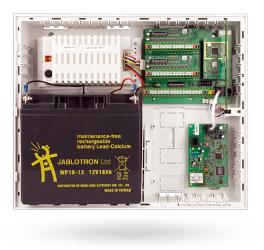 К контрольной панели OASIS JA-83K подключается аккумулятор (18 Ач) для автономной подпитки. Возможно разделение на разделы (2 раздела) или на уровни постановки на охрану (3 уровня). Контрольная панель управляет сработкой сирен (внутренних и наружных) и имеет 2 запрограммированных выхода. Можно регистрировать до 50 кодов и карт бесконтактного считывания.