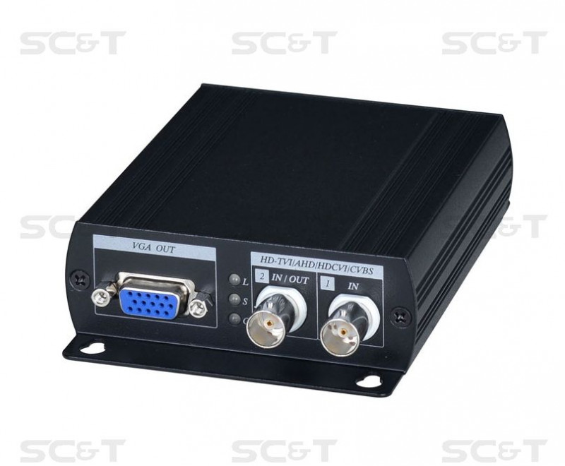 Преобразователь-разветвитель AHD/HDCVI/HDTVI в HDMI/VGA/CVBS. Разрешение входного сигнала AHD/HDCVI/HDTVI, а так же выходных сигналов HDMI/VGA до 1080p. Поддержка стандартов NTSC и PAL. Все три выхода - HDMI/VGA/BNC - могут работать одновременно. Выход BNC поддерживает CVBS и HDCVI (в качестве сквозного выхода). Может работать в режиме коммутатора: 2 входа (HD камера) - выходы HDMI/VGA. Поддержка PiP (режим "картинка в картинке"). Встроенная регулировка разрешения. Вх. - BNC/DC12V. Вых. - HDMI(A)/VGA/BNC(CVBS/HDCVI). В комплекте БП DC12V(0.5А) - 1шт. Размеры (ШxВxГ): 88x30x130мм. Рабочая температура: -40...+55гр. С.