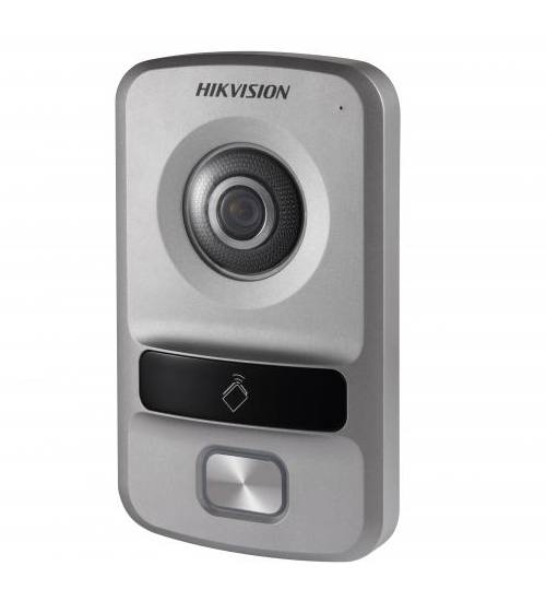 1.3Мп IP вызывная панель на одного абонента с ИК-подсветкой. Встроенные считыватель карт, микрофон и динамик; тревожные вход/выход 4/1; 1 RS-485; 1 RJ-45 10M/100M Ethernet; DC12В/PoE(от DS-KAD606, DS-KAD612); 10Вт; -40 °C...+70°C; IP65; размер 182×100×32.5мм; пластик.